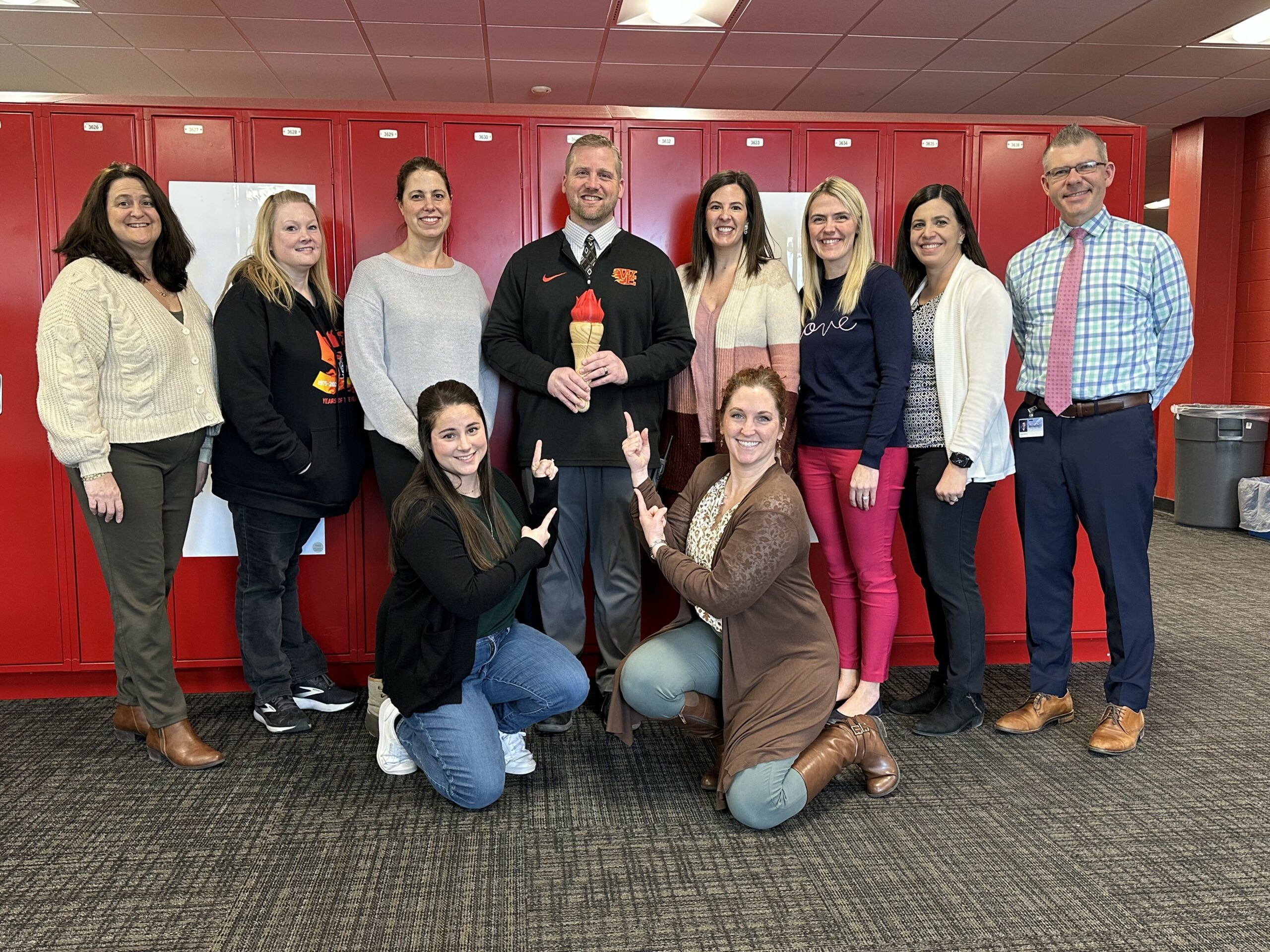First of all, weโd like to thank Mrs. Kramer for nominating us for the torch. We were so touched as a department to be recognized! We are thrilled to share that we are passing the torch to Mr. Suchyna! This recognition is a testament to his unwavering dedication, positivity, and impact on our school community. Mr. Suchyna’s contributions go above and beyond every single day. During exam season, he ensured everything ran smoothly, even with the challenges of two snow days and rescheduled Regents exams. His ability to adapt and find effective solutions is truly remarkable, and he is always ready to collaborate with teachers, listen to concerns, and work through any situation with thoughtfulness and care.